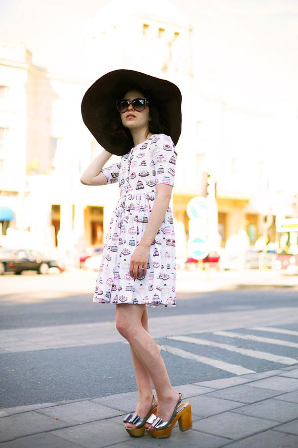 甜蜜蜜的蛋糕印花有米有令你心動?復(fù)古的寬檐帽組合大號太陽鏡,立刻襯托精致小臉!
