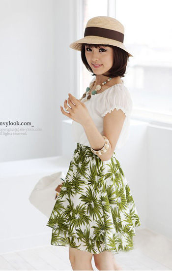白色短袖上裝加印花裙拼接的一款獨特連衣裙,甜蜜中透露出小小的性感,綠色印花透著陣陣涼意,白色圓領(lǐng)上衣褶皺處理,讓細節(jié)處的特別讓人刮目相看,整體也增色不少!