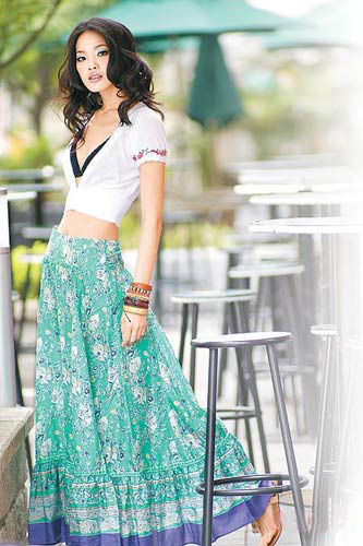 印花長裙配上針織短衣,讓優(yōu)雅的蕾絲緄邊黑色比基尼,勾勒出海灘風(fēng)情。