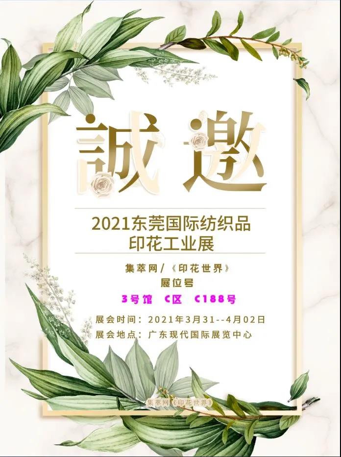 得益于東莞產(chǎn)業(yè)資源與地理位置的雙優(yōu)勢助力,2021東莞展會將邁入新的發(fā)展階段,促進(jìn)行業(yè)向著智能、綠色、前沿、可持續(xù)的方向發(fā)展。以高質(zhì)量活動結(jié)合展商展示,保證觀眾質(zhì)量的同時提高現(xiàn)場成交率,創(chuàng)造溝通環(huán)境!借此,集萃印花網(wǎng)也希望展會能夠為眾多參展商帶來新的發(fā)展機(jī)遇,并預(yù)祝此次展會成功舉辦。