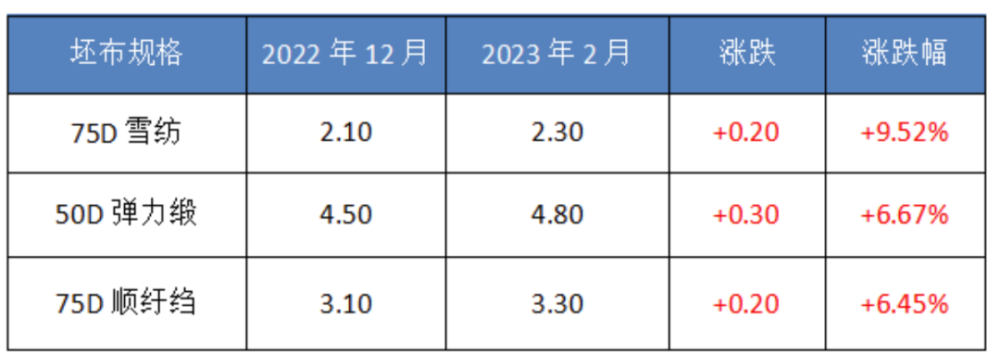面料脫銷、供不應(yīng)求的情況下,坯布的價(jià)格自然也會(huì)向上走。據(jù)了解,熱銷的幾款面料坯布價(jià)格都有上漲,如雪紡上漲0.2元/米,彈力緞上漲0.3元/米。