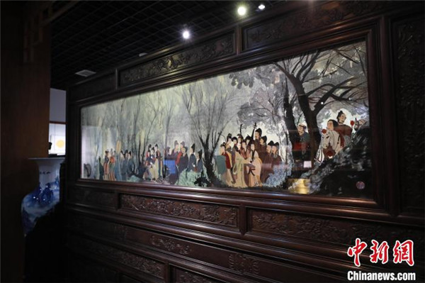 6月18日,江西省新余市夏布繡博物館展出的夏布繡雙面屏風(fēng)《麗人行》。 中新社記者 劉思偉 攝