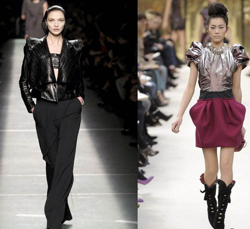關(guān)鍵色彩:黑色、古舊金屬色、灰色、紫色、藍(lán)莓色,同時(shí)在這個(gè)主題中我們很少看到那些自然鮮亮的色彩。 關(guān)鍵面料:皮革、金屬光澤、麂皮、錦緞、針織面料、彈性面料、天鵝絨、色丁、毛皮。 關(guān)鍵單品:寬肩、毛衣或針織山、機(jī)車夾克、緊身連衣裙、迷你氣泡狀環(huán)形裙、郁金香型裙、羊腿袖上衣或裙子。