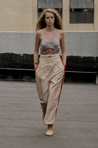 【集萃網(wǎng)觀察】編者按:沿襲了Rachel Comey一貫的碎花田園風格,2010年春夏Rachel Comey又為我們帶來了一場清新自然的時尚秀。模特們仿佛不再被打造成聚光燈下的女神,清新的面容淡雅樸質(zhì)的服裝將她們打造成甜美可人的鄰家少女。