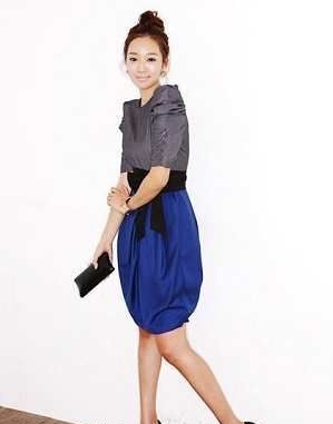 深灰色拼接深藍色的洋裝讓你全身洋溢著濃濃的成熟魅力,strong shoulder的設計元素點綴其中,橢圓形的裙身鼓鼓的,相當可愛,成熟高雅的造型中帶點甜美feel,搭上浪漫的魚嘴高跟鞋,優(yōu)雅的淑女就是你!