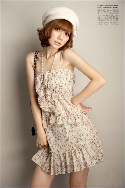 時(shí)尚關(guān)鍵:雪紡層疊雪紡裙、白色貝雷帽
