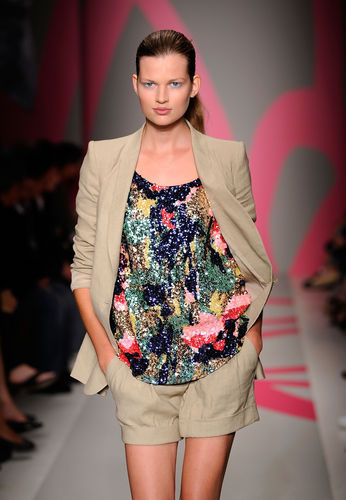 【集萃網(wǎng)觀察】在全球經(jīng)濟跌幅的情況下,DKNY新的現(xiàn)實是樂觀的。2010年的春夏系列的女裝用一種活潑的方式帶來明顯的轉變。設計師Donna Karan全情投入到設計中,時裝上繪滿牡丹的印花圖案,這也意味著她抱有樂觀的態(tài)度。 品牌介紹: DKNY 其實就是 Donna Karan New York的縮寫,它也正是設計師Donna Karan為了她日漸成熟的女兒 Gabby所創(chuàng)作出的年輕副牌,在1988年正式推出。因為女兒生活方式與所居城市的影響,DKNY自然也將紐約獨立自由的精神融入了設計之中,并加入了一股特殊的年輕活力,逐漸演變成流行界中,國際都會風格的代表。 DKNY滿足大眾的需要專為生活、工作、娛樂之中的人們生產設計,對服飾的色彩、款式結構比例等都有獨到之處,尤為青年人所關愛。 這季首發(fā)出場的模特們身上的印花圖案像是平面黑白草稿,隨后多姿多彩的印花迸發(fā)出來,粉色,綠色 和藍色,大膽醒目的花朵混合著嫩嫩的花苞,配以亮片裝飾,這就是 2010年的DKNY。實用的裙子套裝和西裝褲是顯而易見的。我們發(fā)現(xiàn),即使是騎著自行車穿著裙子也不會走光,因為短褲和裙裝內有定制的短褲。粉紅色和牡 丹圖案之間,看起來很有都市風情,例如卡其布、黑色的連衣褲,絆帶高跟鞋和鏈條包袋,進一步展示了城市邊緣的時尚。 黑色為底多姿多彩的印花 抽象藝術也是花朵圖案 大膽醒目的花朵混合著嫩嫩的花苞 實用的花色套裝(搭配) 粉紅色花朵與黑色小禮服完美結合 DKNY式的套裝 黑白鉛筆素描圖案 黑色的線條勾勒出一朵朵牡丹花的圖案 裙邊是層疊雙色效果 都市風情的套裝裙 無褲裝長款西服的運用 閃亮的亮片裝飾拼接而成的花朵圖案