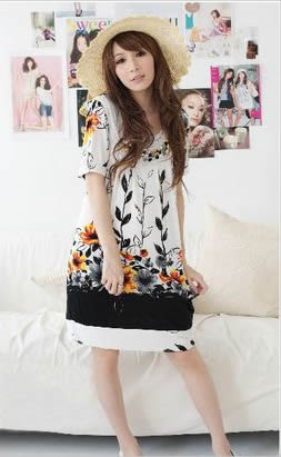愛美的MM看到這條裙裙是不是很心動呢,漸變印花圖案---今年的大熱款哦。多個花朵疊加,讓你看似置身花叢中。