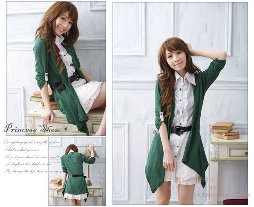 這款假兩件套襯衫,很適合個子高挑的MM穿。腰帶從衣襟穿過,穿出了隨意,還打造出了迷人的小蠻腰。不規(guī)則下擺的設(shè)計,為整款搭配增加了時尚感。