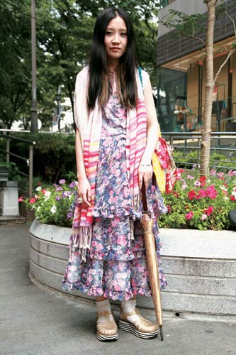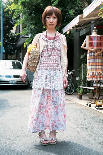 鏤空衫無疑平淡裙裝的扮靚佳品,層疊的組合和透視的效應(yīng),也讓原本平常的印花看起來倍顯清新。