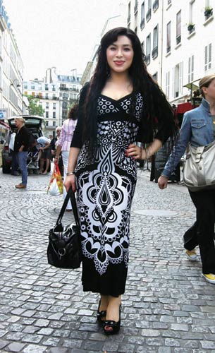 彩虹斑點的快樂氣息,能感染身邊的人,而這條裙子的裙擺卻太長,沒有讓雙腿更好的比例呈現(xiàn),另外鞋子的選擇也有些笨重。