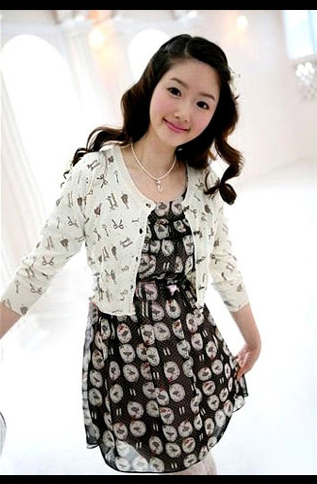 搭配建議:今年超流行的可愛(ài)印花成為魅力時(shí)尚的品味穿著,合身的曲線剪裁,連身印花短裙除了在修飾身形效果十分不錯(cuò)之外,還展現(xiàn)出個(gè)性甜美的風(fēng)格。
