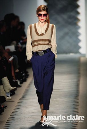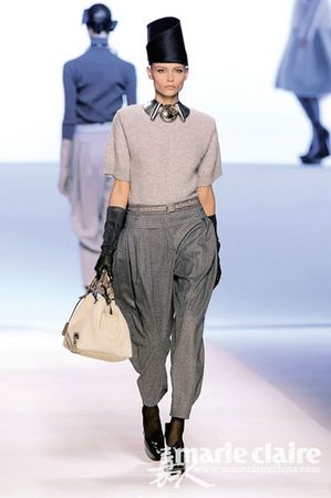 Yves Saint Laurent:品牌本季帶給我們的是上世紀80年代的摩登風(fēng)情。高腰線和西裝外套,都敵不過齊腳踝的蘿卜褲,而它也是整個造型的精髓!