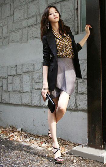 很有女人味兒的一款薄款小夾克,這樣的單品在初秋穿非常有潮味哦,絕對是各位mm衣柜中的必備單品!內(nèi)搭緊身迷你連衣裙配上黑色絲襪,時髦性感女神就此產(chǎn)生。