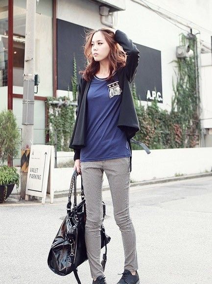 非主流的西裝外套穿起來同樣精彩,綴上了流蘇襟章的上衣搭配細(xì)格子長褲充滿了韓式魅力風(fēng)情,隨身一個(gè)大大的亮皮包包讓你的造型十分出彩!