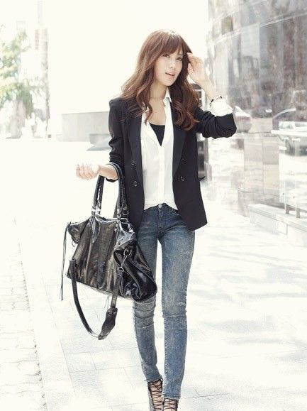 簡單的T恤搭配牛仔短褲以及運(yùn)動(dòng)鞋,總帶給人很豐富的少女氣息,要立刻擺脫這種印象,一件西裝外套會(huì)是你的最佳選擇,黑色的款式看起來更加成熟,如果你覺得太老氣了,選擇白色款的就OK了!