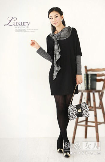 今年秋冬季扎染效果的單品最炙手可熱,如果想要追求時尚但對這樣一種跳躍的圖案又有點小膽怯,那么接下來為你推薦的這款連衣裙,將是你不二選擇。黑色連衣裙領(lǐng)口扎染效果的圍巾裝飾,小面積的時尚元素點綴,打造出獨一無二的個性效果。