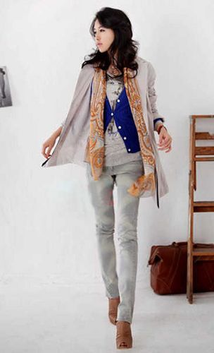 時(shí)尚解析:隨意的混搭裝扮,隨意大方的休閑風(fēng)衣內(nèi)搭針織衫和連帽T恤,再加上深色的鉛筆褲,利用長(zhǎng)短混搭的技巧,輕松穿出年輕時(shí)髦的街頭風(fēng)味,很適合年輕OL們平時(shí)穿著喔!