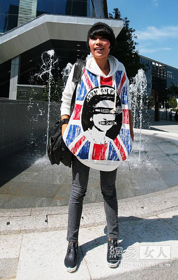 潮味十足的人物T恤非常搶眼,較長的長度讓下身顯得更纖瘦,也讓各位MM街頭率爆升哦!搭配針織圍巾和帽子令整個造型更具時尚感,非常漂亮!