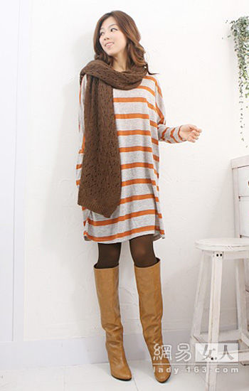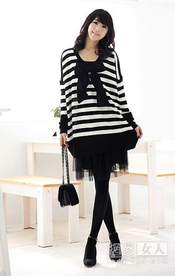 寬松的連衣裙穿著也是很好看的,就算是冷冷的秋冬季節(jié),愛漂亮的MM也仍然無法舍棄對于裙子的熱愛,色調(diào)清新的條紋,帶來輕松的感覺。搭配短裙或者打底褲,輕松打造OL造型。