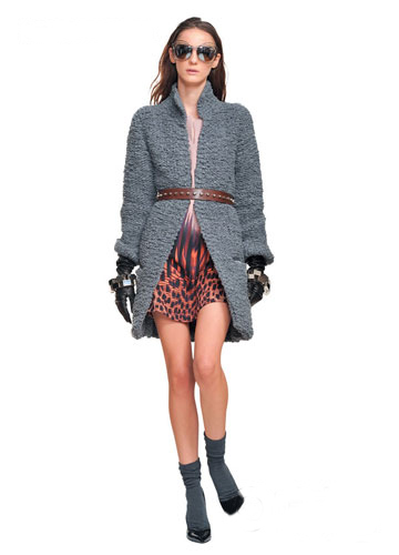 搭配要注意整體協(xié)調(diào)性,灰色底紋的豹紋針織衫的灰色大基調(diào)決定了整體顏色的趨向性,搭配一雙灰色的皮草高跟鞋再合適不過了。