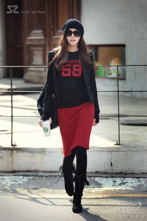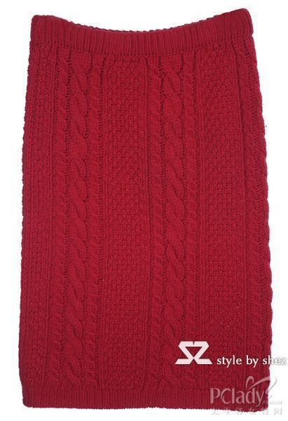 必備款式5:絳紅色毛線高腰裙