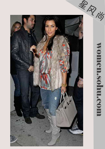 時尚解析:Kim Kardashian抽象印花絲質(zhì)內(nèi)搭輕盈出挑,一抹皮草增強(qiáng)了存在感。素色印花圖案顯出異國風(fēng)情情調(diào),女人味在你舉手投足間表露無遺。
