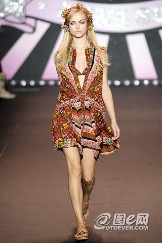 Anna Sui佩斯利紋或蘋果圖案的印花寬松罩裙。以 Anna Sui 風(fēng)格重新著色的碎花圖案,和一絲絲的民族風(fēng)格都是其最愛的手法。