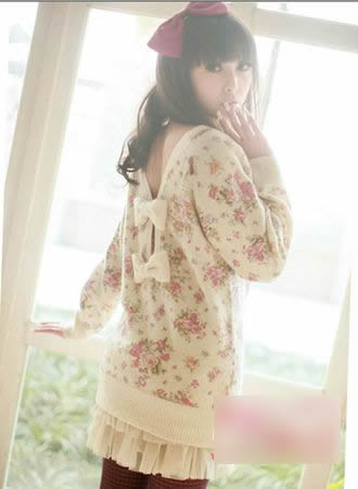 一簇簇油畫風格,粉紅中摻雜著新綠的玫瑰圖案點綴在白色針織上,背后蝴蝶結(jié)連接的露背設(shè)計讓可愛中透露著小性感。搭配蛋糕雪紡裙,營造春之輕盈感。
