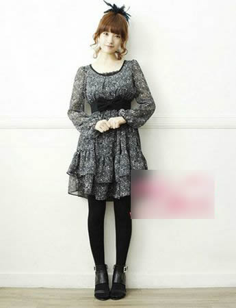 白色小碎花點綴在黑色雪紡連衣裙上,蝴蝶結(jié)束腰與羊腿袖元素充滿復古意味。將冬天Hot的復古裝扮一直延續(xù)到春天!