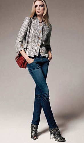 搭配建議:帥氣的西裝式外套和時(shí)尚仔褲搭配在一起,既瀟灑又女人味十足。