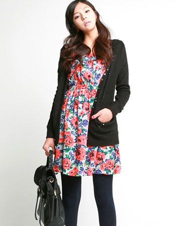最純正的紅玫瑰仍然是眾多女性的鐘愛(ài),是本春季的流行重點(diǎn)元素。這款玫瑰印花的短袖連衣裙將腰線輕松提高了,各種純色的連衣裙搭配都變得便捷和討巧,比如搭配純黑色的開衫和褲襪,從整體上看,感覺(jué)嬌艷的紅玫瑰都栩栩如生地依附在MM的身上了。