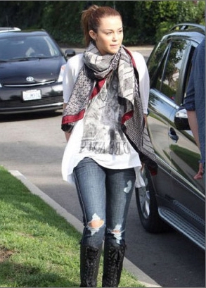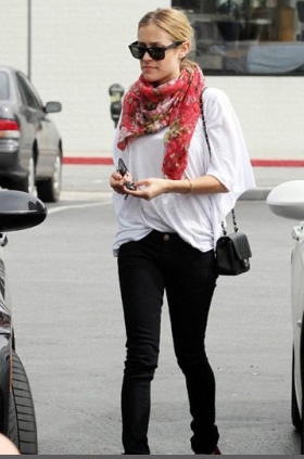時(shí)尚解析:春日是繁花盛開的季節(jié),當(dāng)然少不了一條印花的圍巾。Kristin Cavallari選擇了一條中國風(fēng)紅花圍巾,除了保暖之外也為整款素雅裝扮增添畫龍點(diǎn)睛的效果,更添幾分田園氣息。