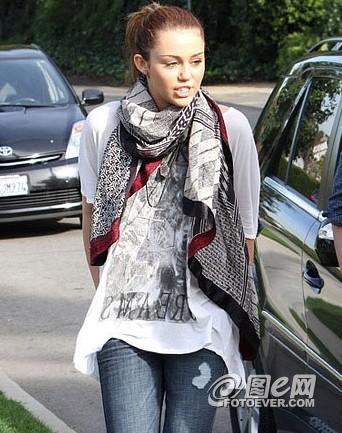 Miley Cyrus的灰色圍巾由不規(guī)則的圖案組成,再拼接紅邊,能打破呆板的感覺。T恤破洞褲搭配這樣一條體積感的圍巾,絕對(duì)能為帥氣程度加分。