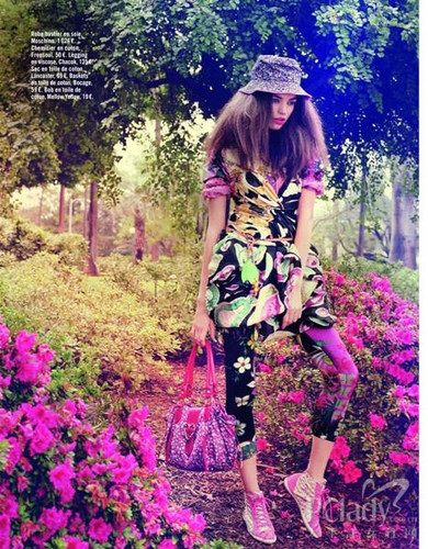 多姿多彩的印花圖案被多次捧上雜志舞臺。法國《Glamour》雜志也曾推出一系列關于印花服飾的組圖,并大膽地采用繁華亂眼的花園作背景,在與模特所穿花卉服飾的強烈對比下,盡顯獨特的風格品味?墒牵绱嘶ㄇ蔚囊路,又有多少人能勇敢地穿上街呢?