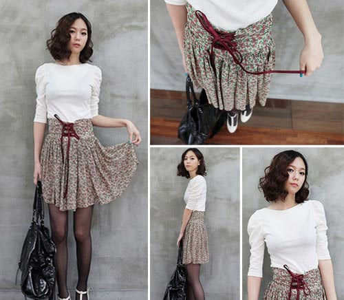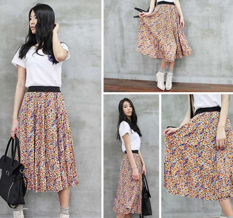 搭配建議:滿眼都是小短裙,想要與眾不同的美眉可以試試這一款長度過膝的碎花半身裙。除了可以掩蓋粗粗壯壯的腿肚以外,隨風輕舞的小裙擺絕對是最美的一道景致,在他的心底留下甜蜜而深刻的好印象!