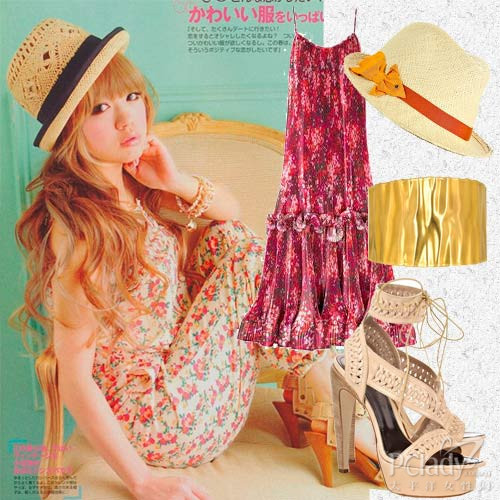 搭配方案:學習雜志的穿衣法,選擇一條夏日風情十足的吊帶印花連衣長裙,搭配海灘風味的淺米色編織禮帽,加上耀眼奪目的手鐲和編織繞帶高跟鞋,讓你整個人看起來就像剛剛在海邊度假回來一樣明媚動人。