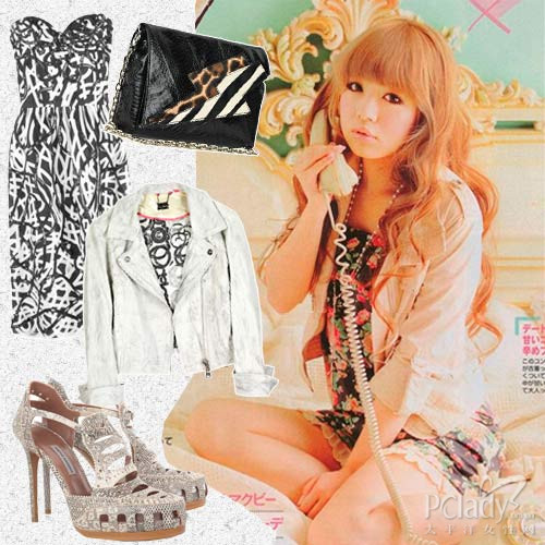 搭配方案:淺色系的皮革面料西服款夾克,搭配超歐美范兒抹胸印花束腰迷你連衣裙,特顯架勢!另外,手包和高跟鞋的選擇更為重要。可以選擇今年流行的動物紋元素手抓包(如豹紋clutch)和動物皮革高跟涼鞋(如鱷魚皮紋高跟鞋),讓你看起來更歐美、更時尚。
