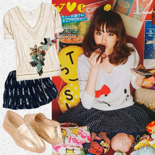 搭配方案:甩掉單調(diào)的T恤型棉質(zhì)上衣,舍棄懶散作風,換上一件做工更精美、更漂亮、更甜美可人的雪紡上衣,再加上色調(diào)相反的可愛紗質(zhì)蓬蓬裙,會讓你整體的格調(diào)大幅提升。另外,好看的頭飾也是非常重要。要穿出甜美、穿出校園味,最好就是戴可愛的寶石珍珠組合而成的細小型頭箍。試試看,是不是覺得自己很像公主呢?