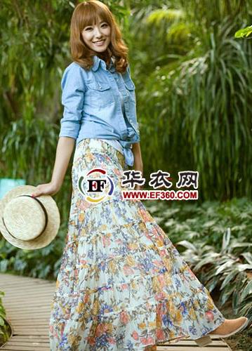 各式甜美浪漫的印花裙在春夏層出不窮,輕松的色彩就能直接聯(lián)想到女人的柔媚與親切感。搭配T恤,讓你在這個(gè)春季綻放新的光彩。