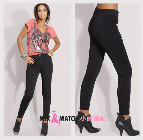 時(shí)尚解析:要想有韓國(guó)明星的味道,那就得選擇這款黑色的收腳九分褲。貼身的設(shè)計(jì)更顯女人味,配上印花T恤,很有韓劇里親切可人的灰姑娘感覺。