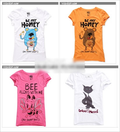 1.卡通動(dòng)物印花T