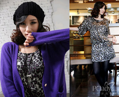 時尚點評:一提到豹紋大家就會想到哪漫天飛舞的動物紋,的確動物紋是今年的熱點,通過變換色彩的豹紋印花裙為你多加入了一絲成熟的魅力,搭配一件紫色的針織外套,在這個春季就來品味這成熟嫵媚的風情吧。