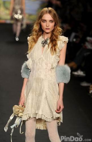觀看Anna Sui作品秀的一大樂趣就是它的開場總能將你聞所未聞的一個新領(lǐng)域展現(xiàn)出來。2010秋冬季Anna Sui的作品秀就是一張通往十九世紀后期美國工藝美術(shù)運動的護照。它正是Anna Sui多年來被歸置于新藝術(shù)派的風格的最佳呈現(xiàn)。