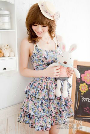 藍(lán)色丹寧布吊帶裙,別致的粉紅碎花相當(dāng)可愛,彰顯你甜美的氣質(zhì);而腰間的蝴蝶結(jié)更是讓你甜美度UP,而裙子的簡(jiǎn)單剪裁很是符合夏日該有的簡(jiǎn)約主義呢!