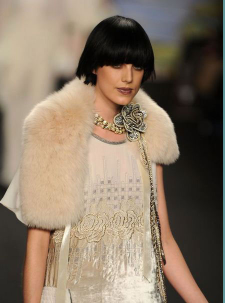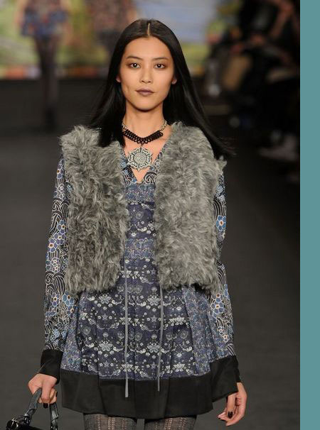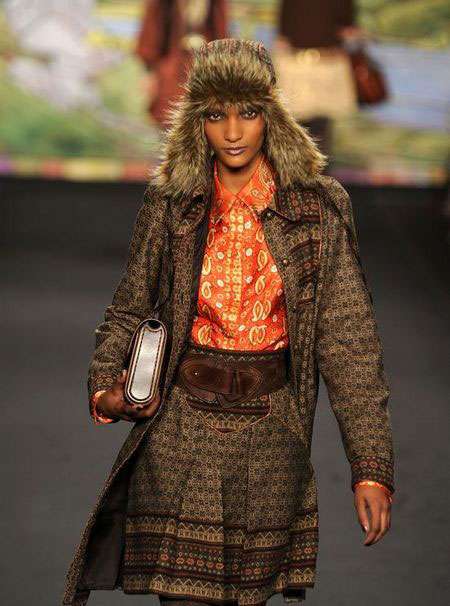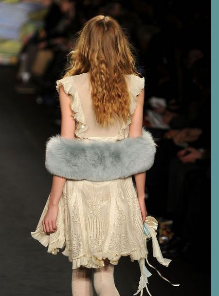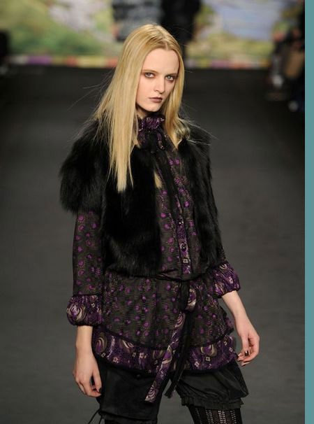 如果說單從這些帶有濃郁復(fù)古風(fēng)格的衣服就將本季的風(fēng)格定義為古著式看點(diǎn),或許是不太恰當(dāng)?shù)。?duì)于2010秋冬季AnnaSui作品秀的整體印象應(yīng)該是稀奇古怪的反回歸。不用矛盾,不用懷疑,這就是AnnaSui!受奇才StevenMeisel的影響,她知道如何恰如其分地搞怪。平底靴,寬大紐花毛衫,又或者是軟毛皮無鈕女短上衣都讓這種嬉皮公主的形象更實(shí)際。同時(shí),那些不被提及的,未能得到相應(yīng)評(píng)價(jià)的幕后工作者們,現(xiàn)在正是時(shí)候來把功勞分給他們了。PatMcGrath的精美妝容,Garren的漂亮發(fā)型和FredericSanchez的音樂。在將來的某個(gè)時(shí)候,這些元素都將會(huì)是最精彩的紐約被低估的設(shè)計(jì)者博物展會(huì)上不可或缺的一部分。