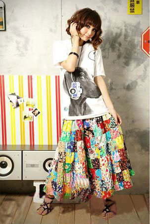 酷酷的灰色大頭狗圖案,狗狗的眼神帶著一絲調(diào)侃和不屑,非常有個(gè)性;而五彩印花拼布長(zhǎng)裙,搖曳的裙擺中的,展現(xiàn)你的風(fēng)情萬種,只是這份風(fēng)情萬種明顯有點(diǎn)壞壞的感覺哦,不然何以你放棄純美的印花,選擇如此斑斕的印花拼布長(zhǎng)裙來搶眼呢?