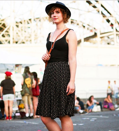 一件式連衣裙,碎花圖案讓整體顯得并豐富,要是搭配一款項(xiàng)鏈就更顯層次感。復(fù)古包當(dāng)然必不可少,黑色絲襪也不能少修長美腿的展現(xiàn)就靠它了!