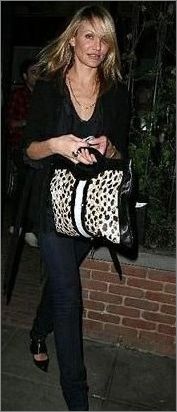 豹紋印花手袋搭配上皮衣皮褲,這身打扮帥氣十足,服裝和手袋相得益彰。
