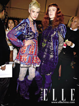 70年代的“花的孩子”從夏天一直延續(xù)到秋冬。用長裙、喇叭褲等勾勒出修長的身體輪廓,而因?yàn)榧竟?jié)原因,印花的色澤變得更加濃重,除了花朵圖案,還有取自俄羅斯、羅馬尼亞等頗具異國情調(diào)的民族圖案。常見暖色調(diào)的番茄紅,有時(shí)點(diǎn)綴著明亮的孔雀藍(lán)和黃色。當(dāng)然,“嬉皮士”還離不開流蘇。流蘇絲巾、長纖維的皮草披肩,從腰部和肩部傾瀉下來。